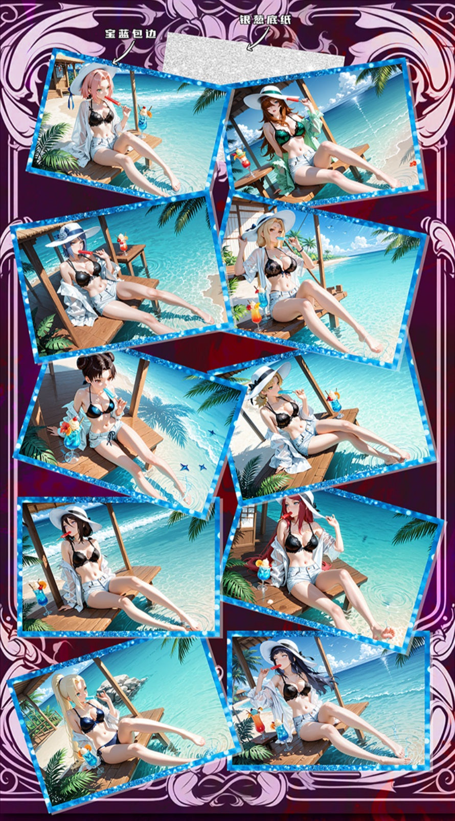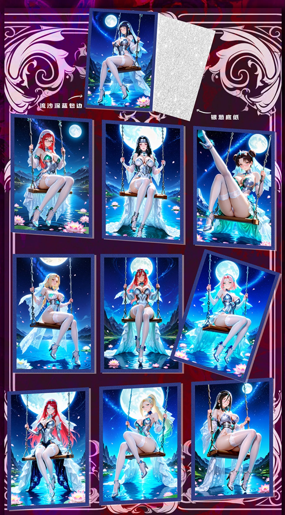 You will receive 3 packs. Each booster pack contains one A6 card (postcard size). Cards are thick stock with textured printing, edged frame and beautiful acrylic finish.